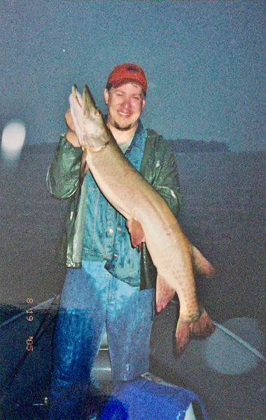 On a rainy August morning, Outdoor News Magazine author Ron Nelson and I struck muskie gold. He caught 2 muskies (a 44" and 45") and I boated a 45" fish all within an hour and a half. To the right is the article he wrote about the memorable morning. All three muskies are pictured below.